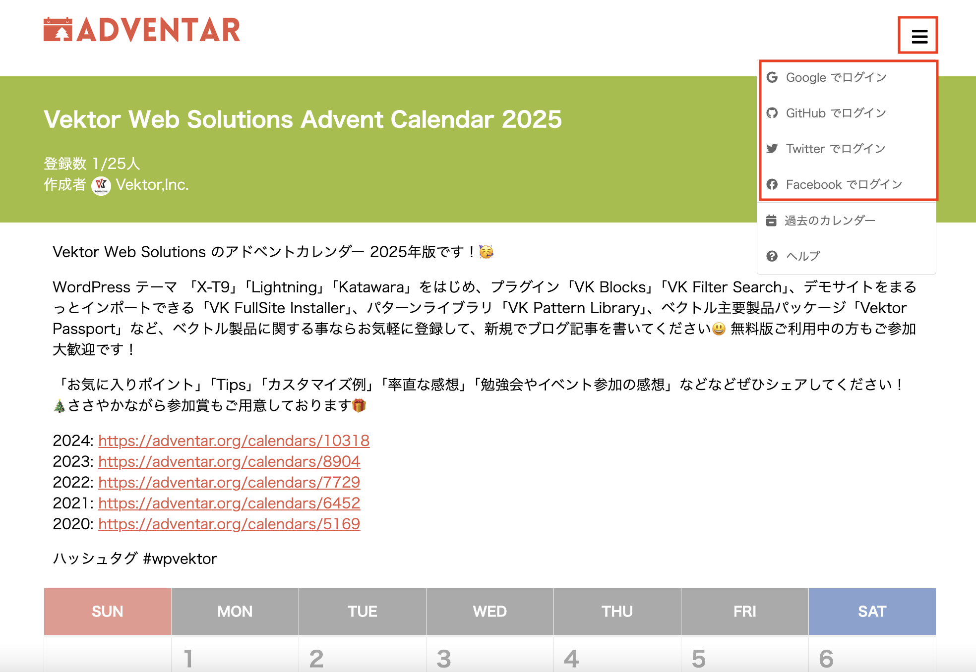 - VWS Advent Calendar 2025 のページで、お好きなブログ公開日を選択 📅