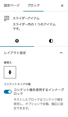 スライダーブロックに「コンテント幅を使用するインナーブロック」設定を追加しました