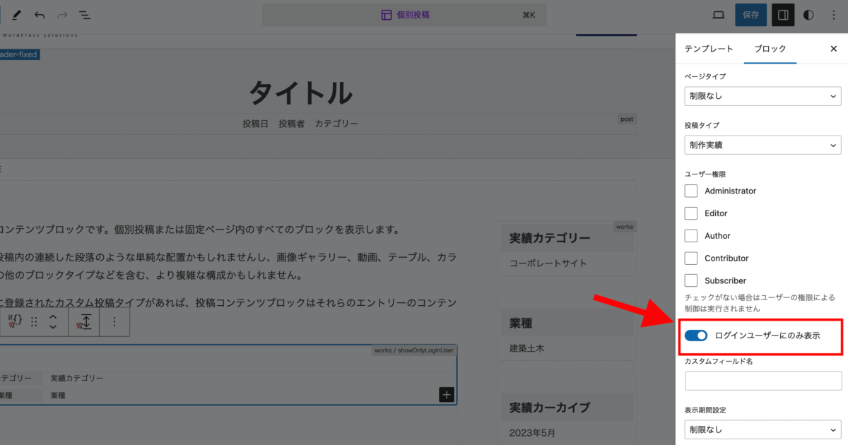 会員サイトなどで、ログイン中のユーザーかどうかで表示要素を切り替えたりする事が簡単にできます。たとえば VK Blocks Pro のダイナミックテキストブロックと組み合わせると、ログイン中のユーザーに対して、「こんにちは ◯◯さん」といった表記をし、未ログインの場合はログインへのリンクを表示したりする事がノーコードで可能です。