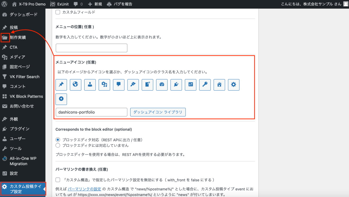 ExUnit 9.98.0 のカスタム投稿タイプ設定でメニューアイコンを変更できるようになりました
