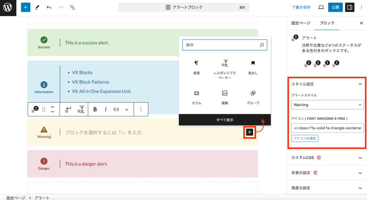 - 3.3. アラートブロックでのアイコンとインナーブロックの設定