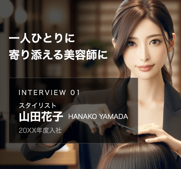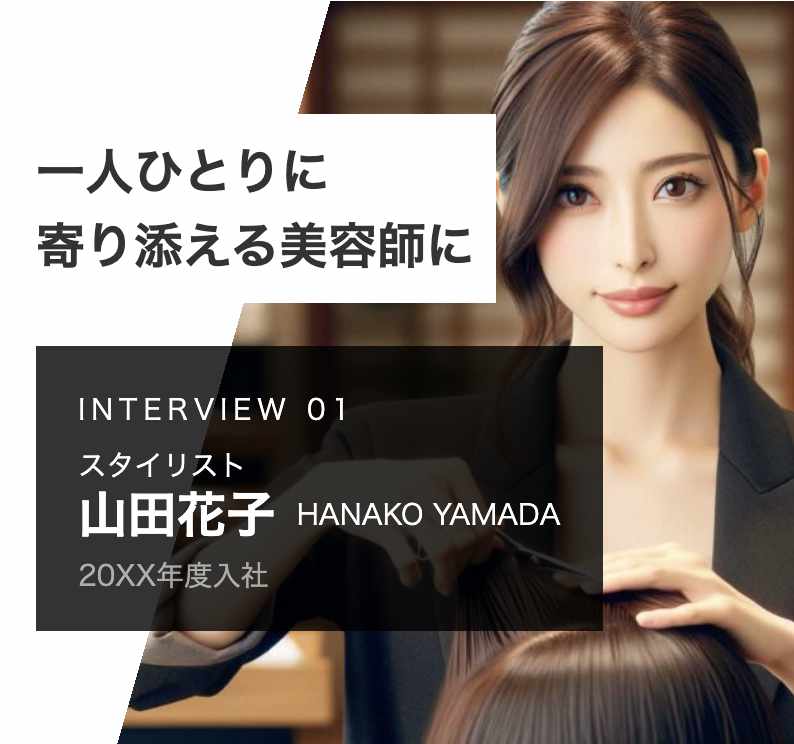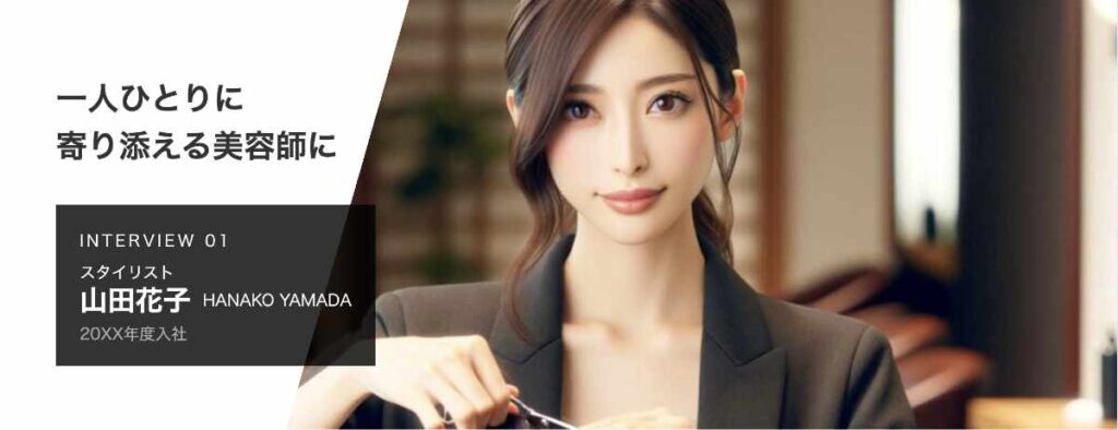 最終的に先に紹介したタイプを使いましたが、採用ページのインタビュー用に作ったバナーです。背景を斜めにカットしつつ各画面サイズでも各要素の視認性を損なわないようにしています。
