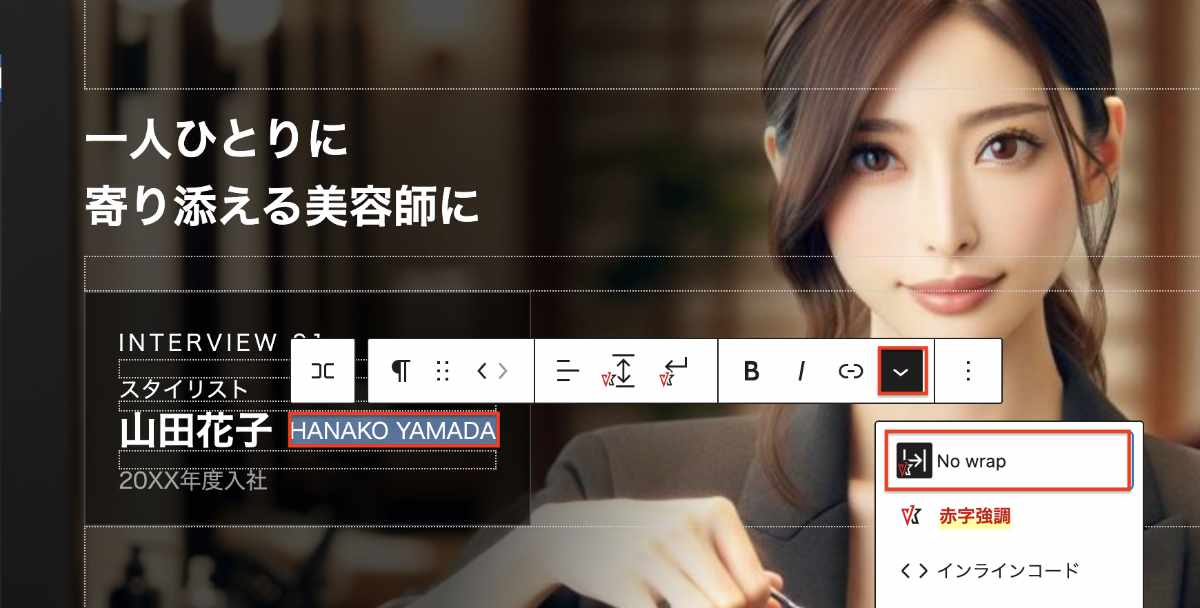 画面が狭くなった時に意図しない箇所で改行されないように、No wrap を指定しています。