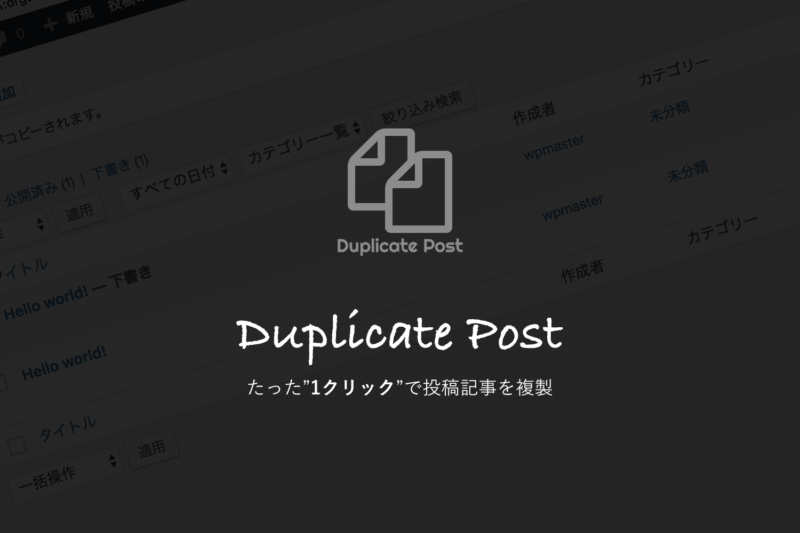 1クリックで、投稿記事を簡単に複製できるプラグイン「Duplicate Post」