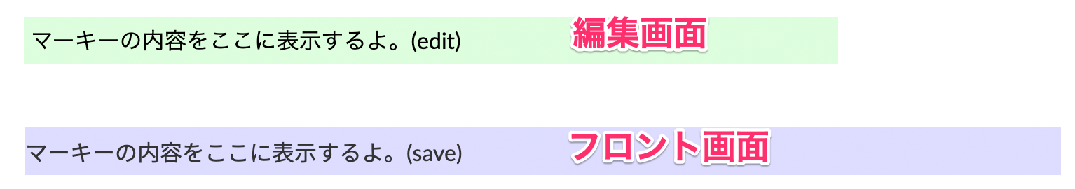 <!-- /wp:my-block/marquee -->コメントでブロックの開始終了の位置が示され、その中に生成されたHTMLがあります。こうしてHTMLという形でブロックが出力されているにすぎません。ブロックエディターはこのHTMLからブロック情報を取得しているのです。