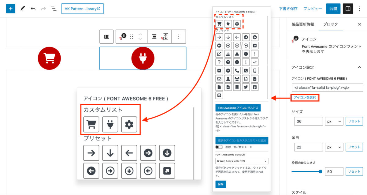 よく使うFont Awesomeのアイコンをカスタムリストに追加しておく