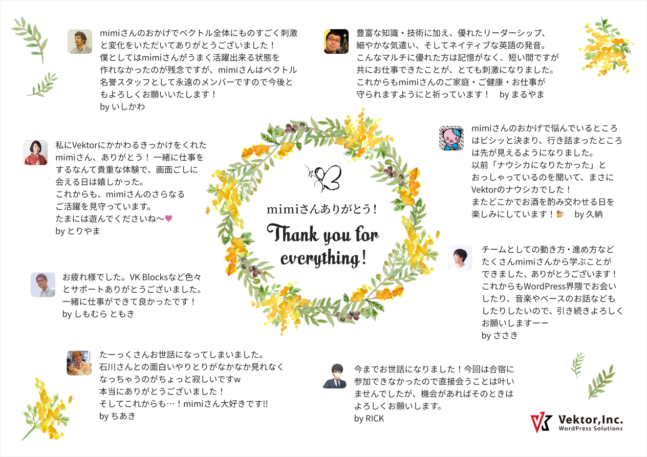 mimiさんほんとうにありがとうございます!そして石川さんの寄せ書きコメントにもあるように、名誉スタッフとして永遠のメンバーですので今後ともよろしくお願いいたします!