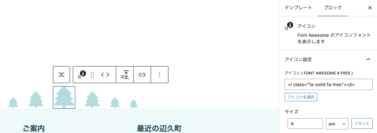 フッター上部の木のイラストはVK Blocks のアイコンブロックでできています!だから、他のお好みのアイコンに変更できるんですよ。