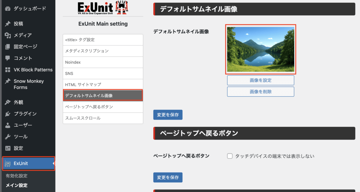 • ExUnit > メイン設定 > デフォルトサムネイル画像