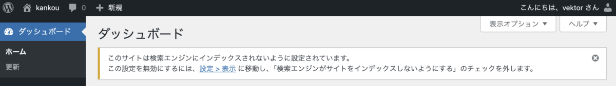 VK FullSite Installer でインポートしたデモサイトは、設定 > 表示 > 検索エンジンでの表示の「検索エンジンがサイトをインデックスしないようにする」にチェックが入った状態になっています。