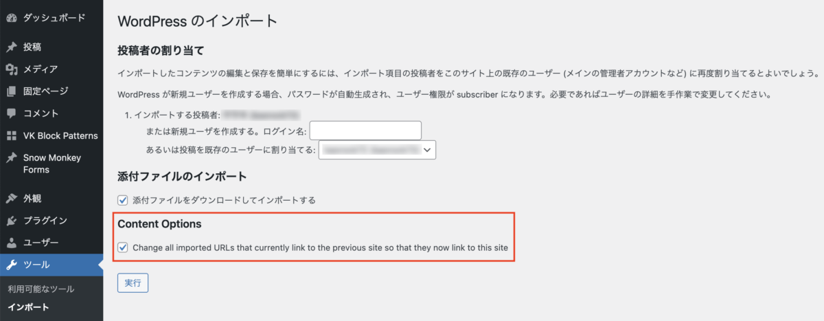 2. [ ステージング ] ツール > インポート > WordPress のインポート(添付ファイルのインポートも)