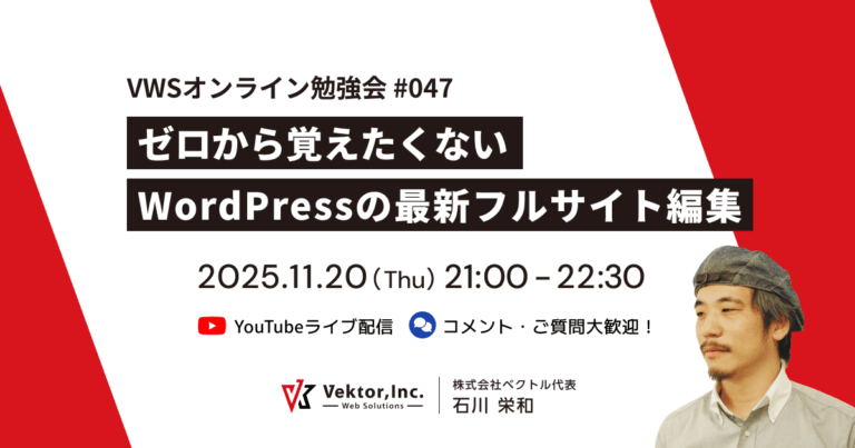 [ 動画・スライドあり ] VWSオンライン勉強会 #047 ゼロから覚えたくない WordPress の最新フルサイト編集 を開催しました