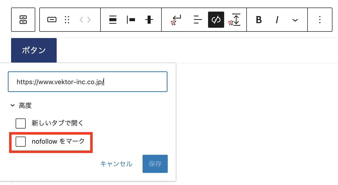 ボタンブロックでリンクを設定する際に、nofollowを指定できるようになります。