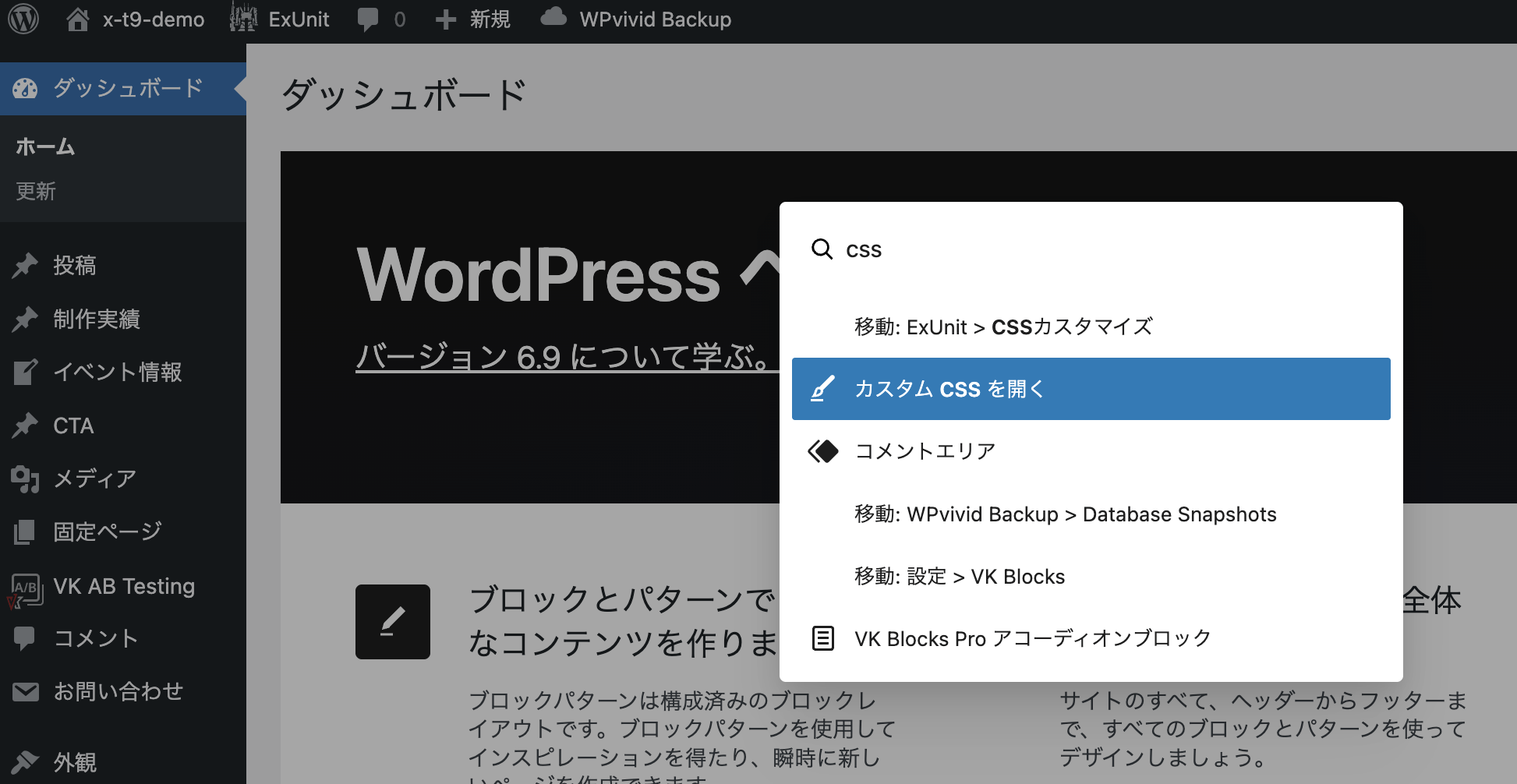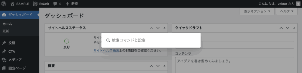 これまでは、エディター上でのみコマンドパレットを呼び出せましたが、WordPress 6.9 からは管理画面のどこからでも呼び出せるようです。