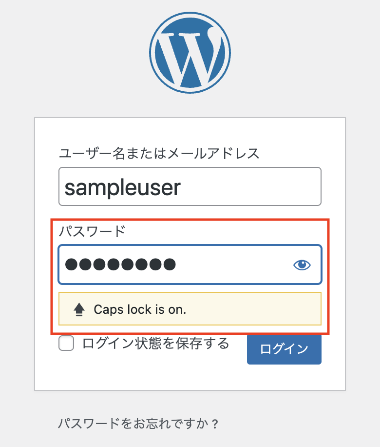 管理画面へのログインの際に、CapsLockキーがオンの状態でパスワードを入力すると、その旨を知らせるメッセージが表示するようになります。意図せずCapsLockになっている時に気づきやすくなってよいですね。