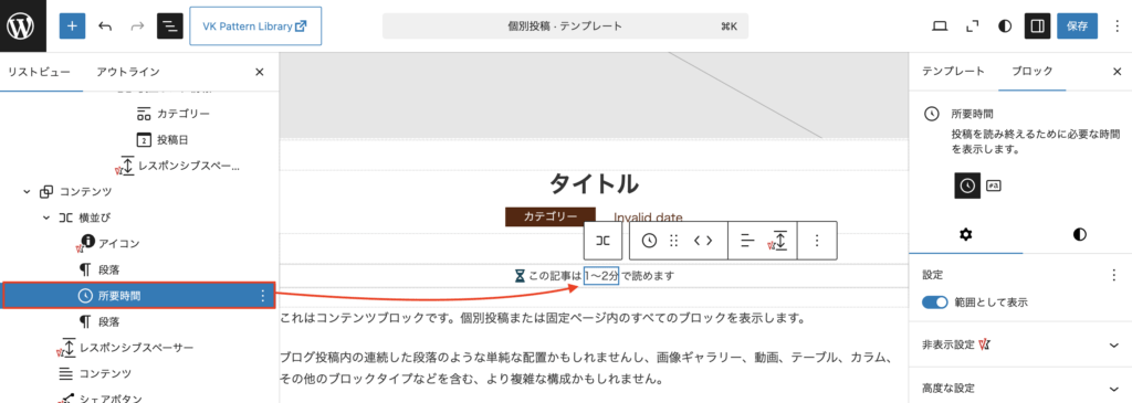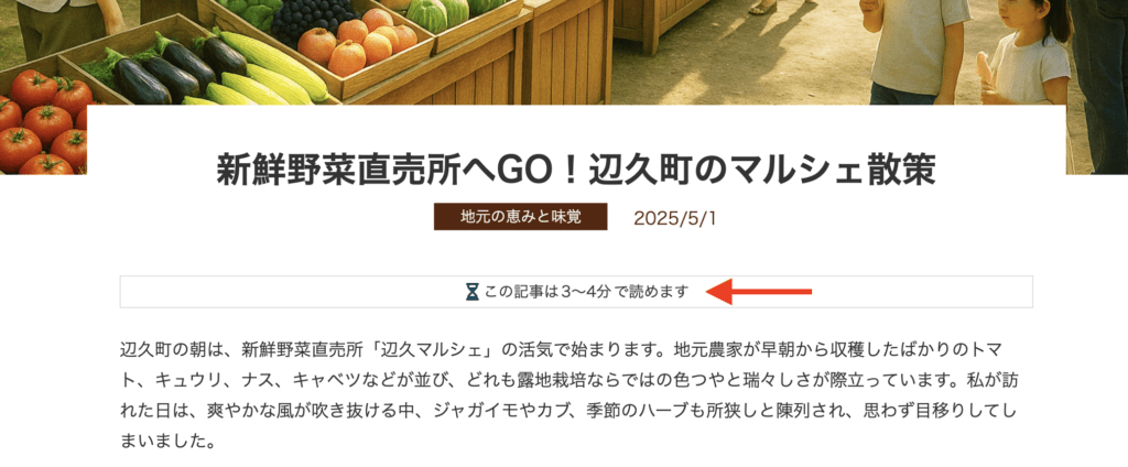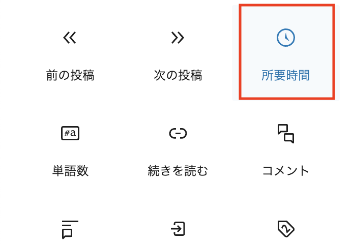 所要時間ブロックが追加されています。「この記事は◯分で読めます。」のような読了の目安時間を表示できます。