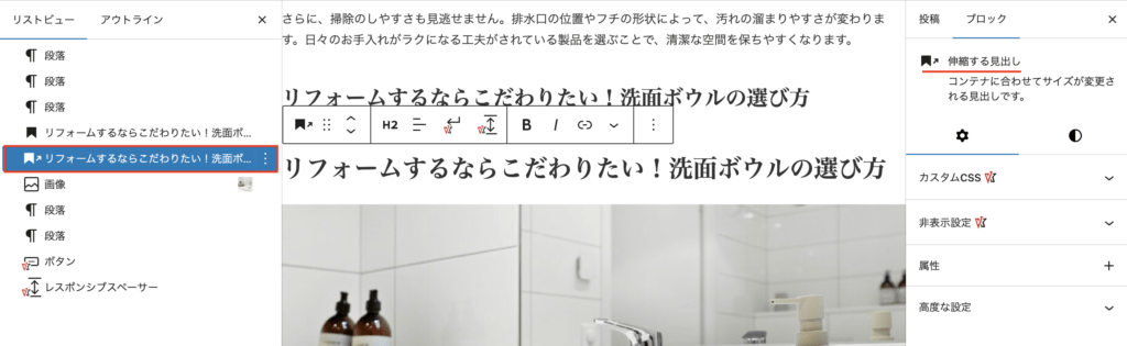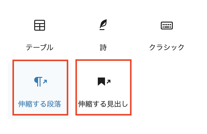 伸縮する段落・見出しブロック