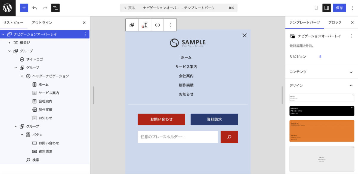 今回のアップデートで一番助かるのはこれですね。今までのフルサイト編集はモバイルのナビゲーションが厄介でネックだったので、独自で実装しないといけないなと思ってましたがが、これで十分いけそう!