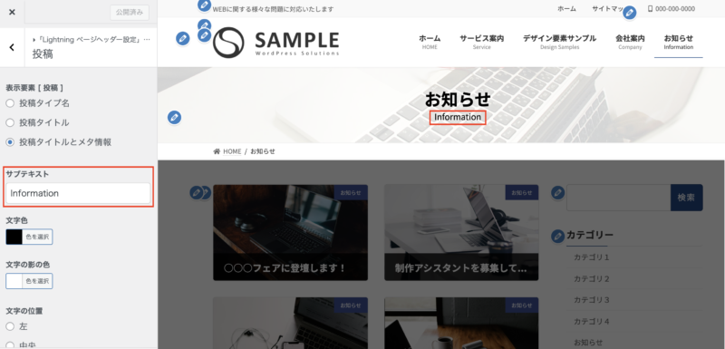 この記事は2年以上前に公開されたものです。最新の情報を参考にしてください。Lightning G3 Pro Unit 0.13.0では、ページヘッダーカスタマイズ機能において、アーカイブページのページヘッダーにもサブテキ … 続きを読む Lightning G3 Pro Unit 0.13.0 でアーカイブページにページヘッダーのサブテキストを設定できるようになりました