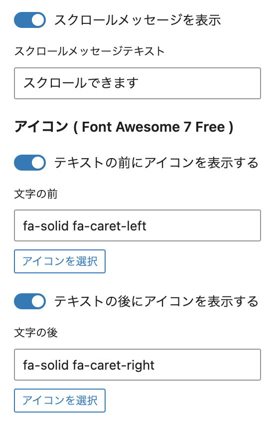 スクロールメッセージは自由に編集できます。また、メッセージの前後のアイコンもお好みのものに変更できます。