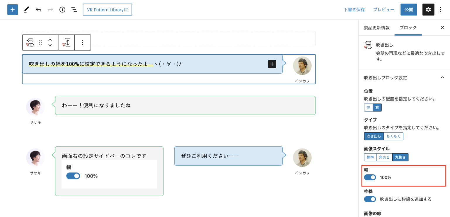 VK Blocks 1.41.0 で吹き出しブロックの吹き出しの幅を100%に設定できるようになりました