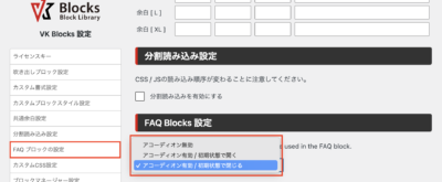 FAQブロックを挿入したときのアコーディオンの開閉状態を指定できます。