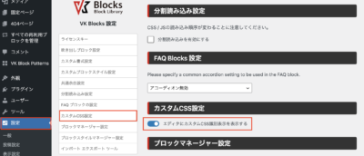 カスタムCSS識別表示のオン・オフの設定が可能です。