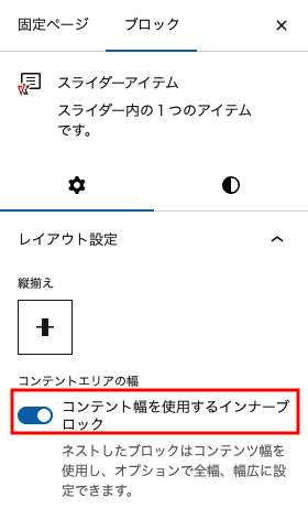 [子ブロック] スライダーアイテムの設定