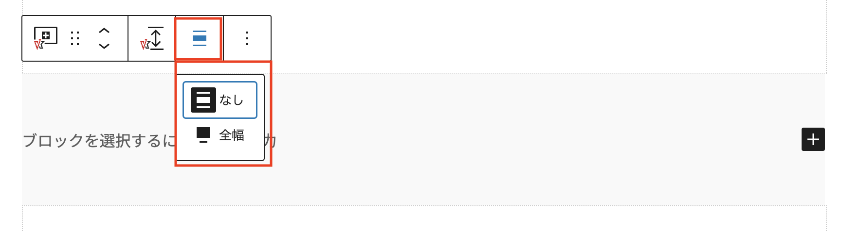 Outerブロックを全幅にしたい場合は、ブロックツールバーから設定します。