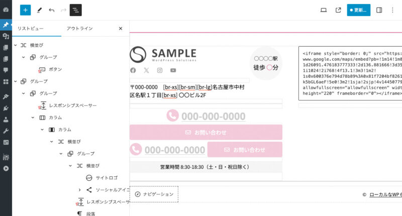 親ブロックや子ブロックを選択する際は、リストビューを開いて作業するとやりやすいです。リストビューについては以下を参考にしてください。