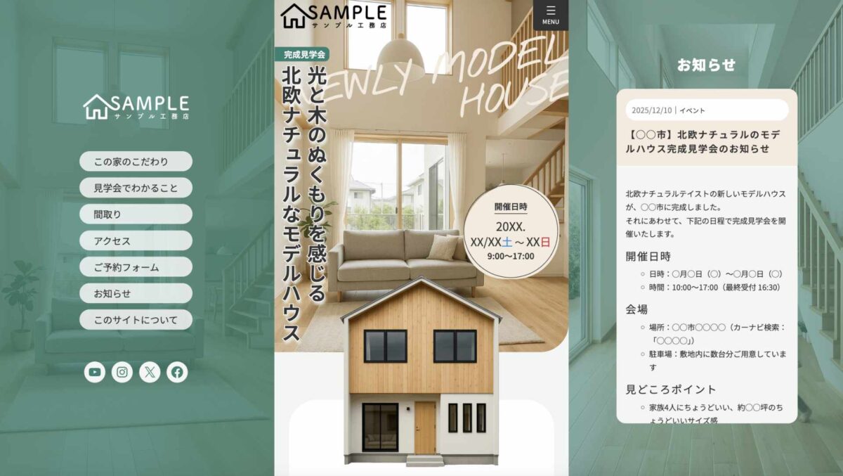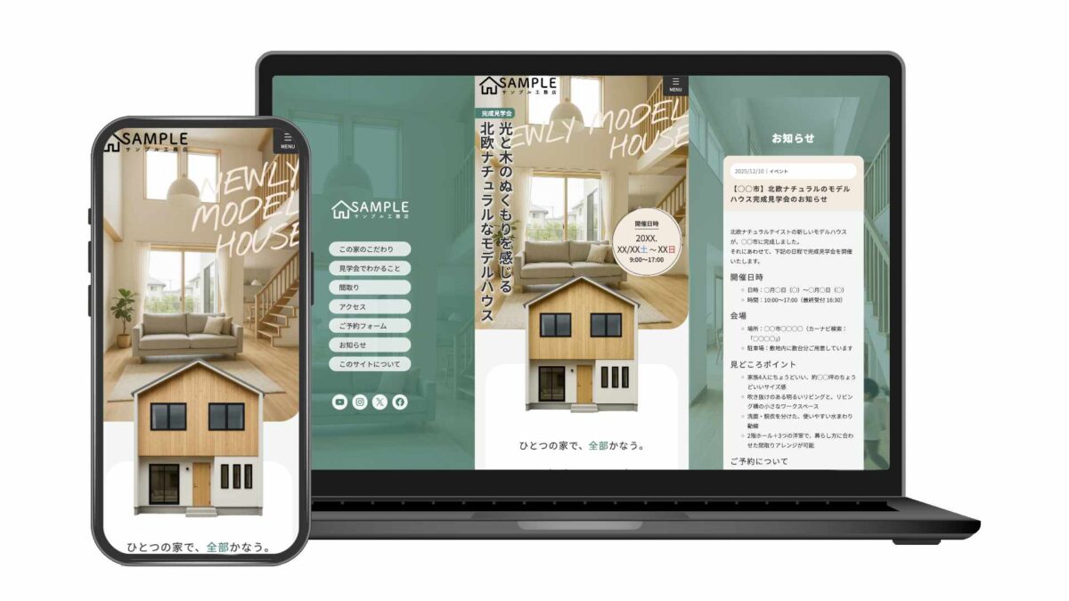 スマートフォンでの見やすさ・使いやすさを最優先に設計したモバイルファーストのデザインを採用しています。イベント特設サイトのLP(ランディングページ)や飲食店のホームページなど、スマホからの閲覧が多いサイトに最適です。